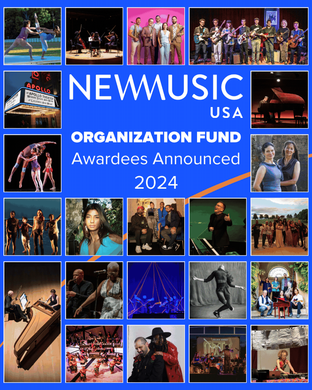 New Music USA is proud to announce the 85 awardees for the 2024 New Music Organization Fund, which provides grants to outstanding organizations that work regularly with and support the development of music creators and artists, offering crucial resources to their community. Totaling $613,500 in awards, the program funds organizations working in a variety of genres to help them sustain their programming of new music, nurturing of music creators, and other services.